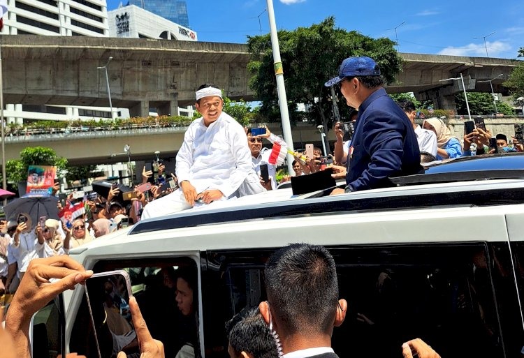 Mantan Juru Bicara KPK, Febri Diansyah, hadir mendampingi Elvizar sebagai pengacara dalam pemeriksaan tersangka di Gedung Merah Putih KPK, Jakarta Selatan, Senin (6/10/2025).