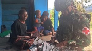 Kakopom, Distrik Parim, Papua — Pos Parim Satgas Pamtas RI–PNG Yonif 751/Vira Jaya Sakti (VJS) melaksanakan kegiatan pengobatan door to door di Kampung Kakopom sebagai upaya mendukung program pembinaan teritorial sekaligus meningkatkan pelayanan kesehatan kepada masyarakat di wilayah binaan.(Minggu,25/1/2026).